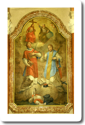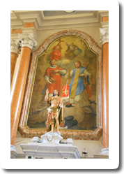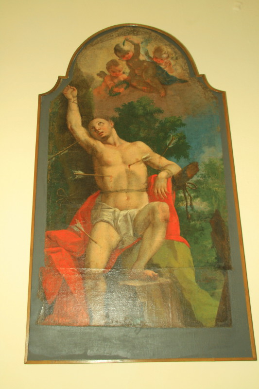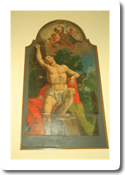 Če oltarna pala kaže na izzvenevanje baročnega duha v poljudnost, pa sodi platno s puščicami prebodenega sv. Boštjana med kvalitetnejša dela baročnega slikarstva na Slovenskem, saj ga je nekje po letu 1770 upodobil ajdovec Anton Cebej, najmlajši izmed štirih evangelistov našega baroka. Umetnik jo je ustvaril v svojem zrelem obdobju, ko je s svetlejšim, vedrejšim koloritom in z ikonografsko predlogo prevzemal karakteristike sočasnega pa tudi starejšega beneškega slikarstva. Kako je prišla sem in za katero cerkev je bila prvotno slika namenjena bo najbrž za vselej ostala skrivnost.